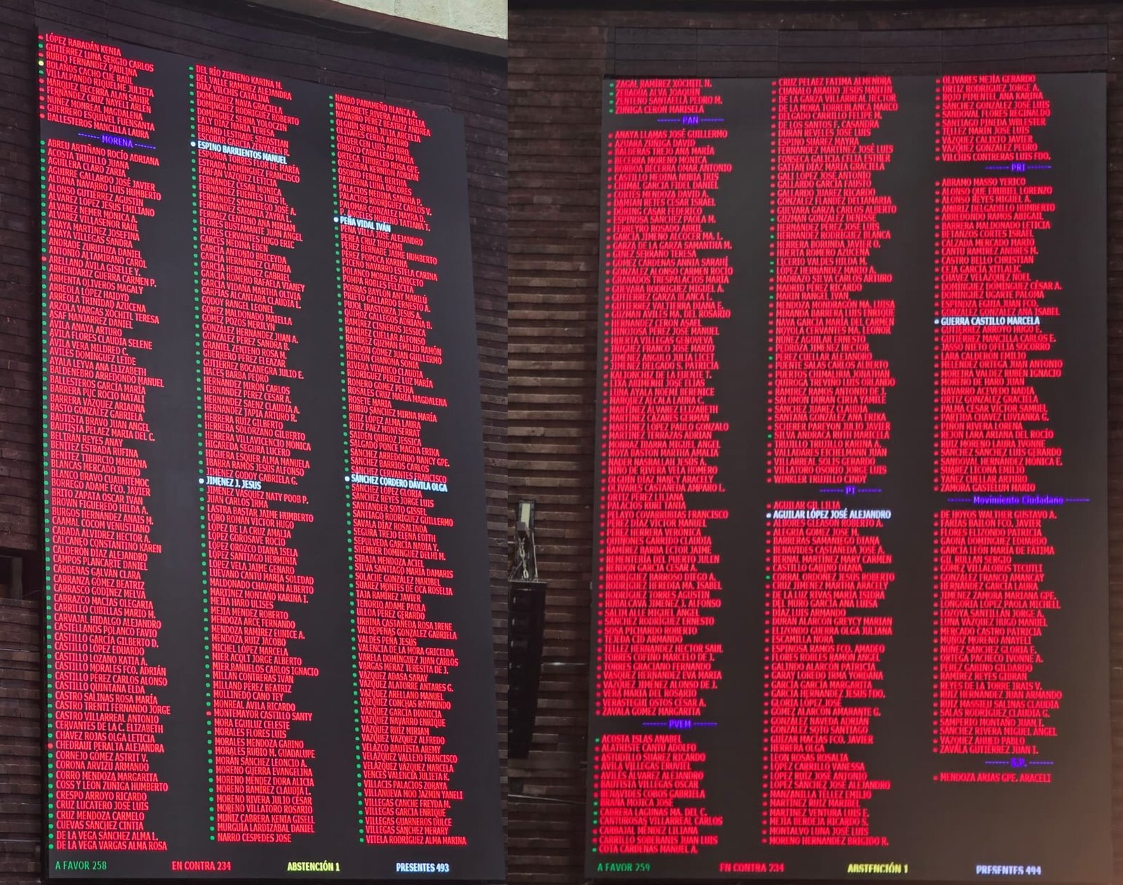 Durante la votación realizada este miércoles, el bloque oficialista consiguió 259 votos a favor, mientras que 234 legisladores votaron en contra, principalmente de la oposición y algunos aliados que se desmarcaron de la propuesta. El resultado evidenció una división política que impidió alcanzar la mayoría calificada requerida para reformas constitucionales.