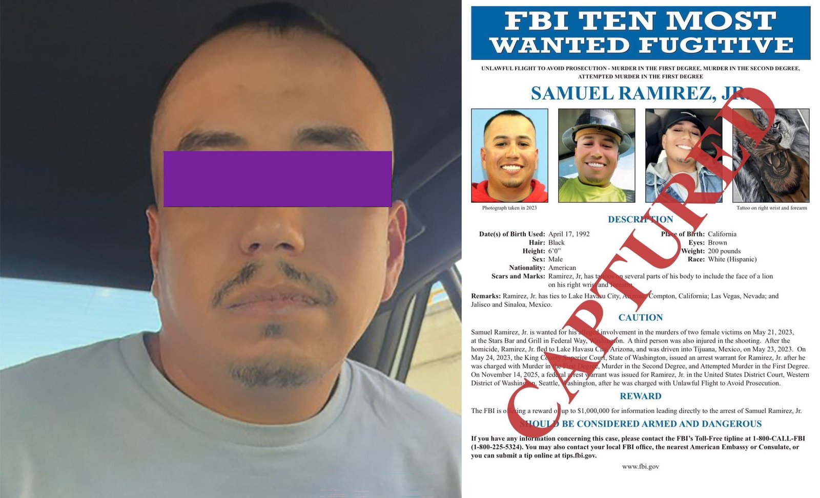 De acuerdo con las investigaciones, Ramirez Jr. es acusado de participar en un tiroteo ocurrido el 21 de mayo de 2023 en el bar Stars Bar and Grill, ubicado en la ciudad de Federal Way.