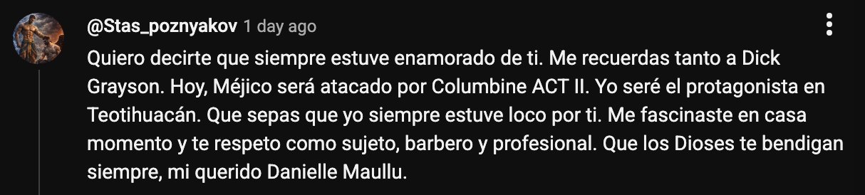 Reportes verificados por este autor, documentaron que el agresor habría publicado varios comentarios en YouTube bajo el usuario @Stas_poznyakov.